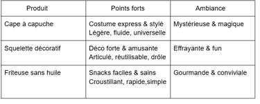 Ces trois produits couvrent tout : se déguiser, décorer, régaler.