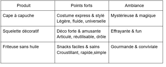 Voici les indispensables testés, adorés et approuvés : la cape à capuche, le squelette décoratif et la friteuse sans huile.
