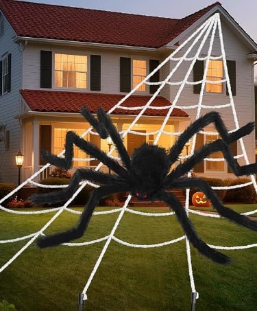 Land Guard 240'' Grande Toile d'Araignée Décoration d'Halloween + 70'' Énorme Araignée pour Toit avec Grande Toile Triangulaire pour Maison Extérieure et Intérieure